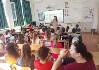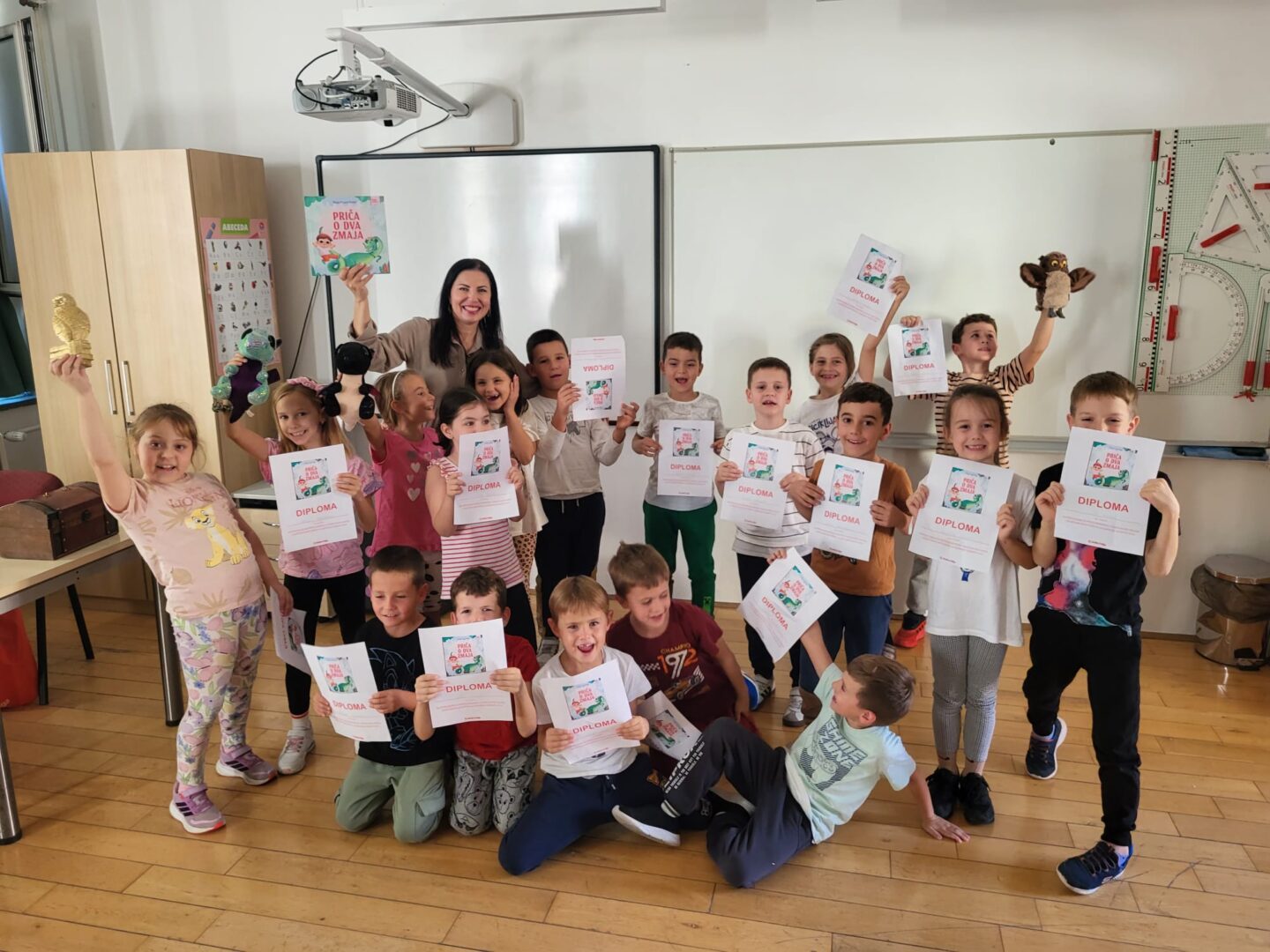 Učenici prvih razreda pratili su događaje i poruke njezine slikovnice Priča o dva zmaja .